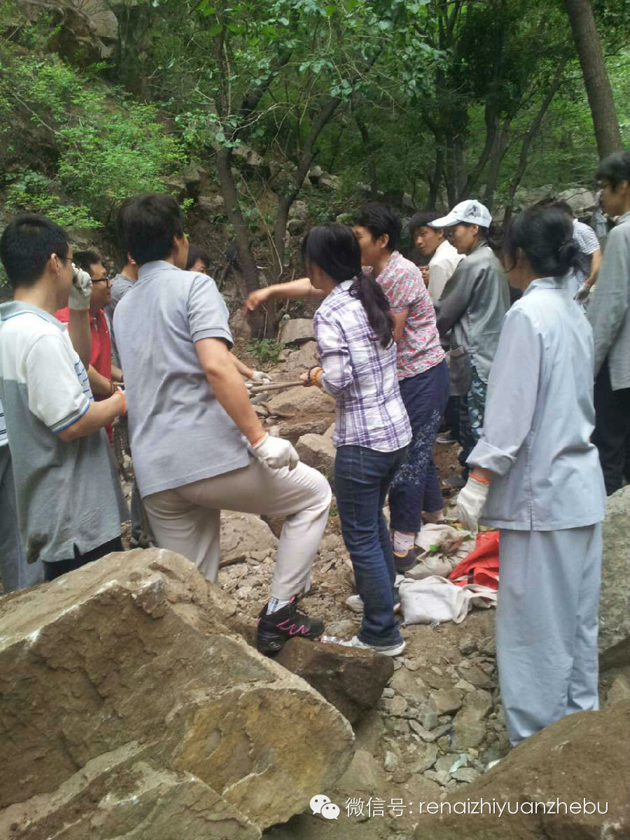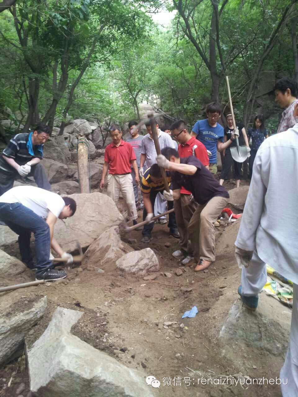 问渠那得清如许,为有源头活水来。2014年6月17日,媒体中心40多名志愿者来到龙泉寺参与寻找水源的出坡活动。原计划9点钟到山上小白象前集合,但不到八点钟就接到申立成师兄的短信:我们很快就到寺里了,杨杨、刘静、申立成、我……看到这个短信心里不免着急,因为我们还在西苑地铁口接人呢。