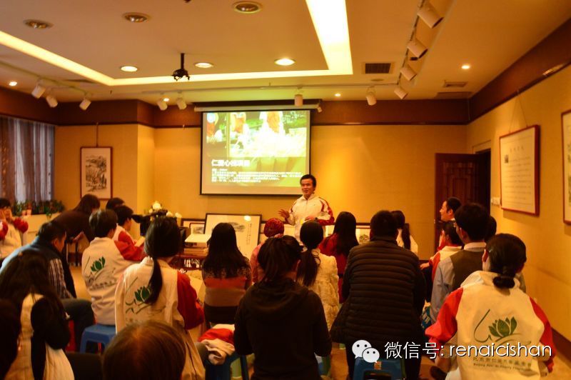 2014年12月14日星期日下午,仁爱慈善基金会的六十余名新老志愿者,汇聚北京首享科技大厦二层竟陵水茶苑,参加志愿者部组织的第一次仁爱慈善通识培训。