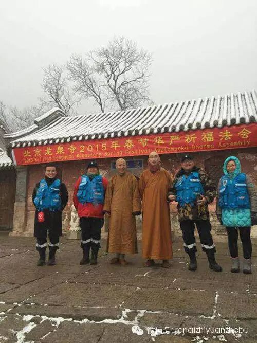 2015年新春佳节之际,北京市仁爱慈善基金会灾害救助中心受龙泉寺法师邀请,对龙泉寺2015年春节华严祈福法会进行安保护持,保证全程的顺利进行。仁爱灾害救助中心仁爱救援队队员,根据仁爱灾害救助中心部长、仁爱救援队队长李韵峰的安排,参加了此次祈福法会的护法任务。