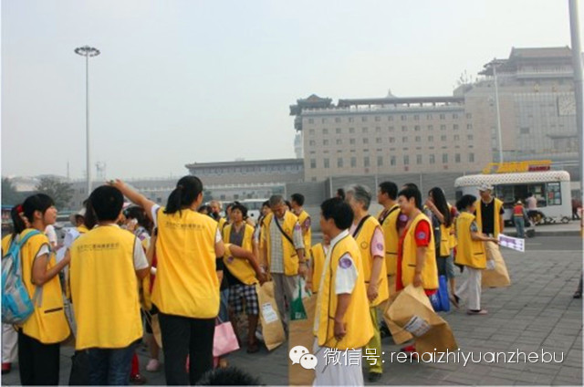 2012年7月1日 仁爱心栈夏季环保节能减排宣传活动在北京西客站南广场上如火如荼地展开。此次活动由红莲心栈牵头,清华心栈和朝外心栈三个心栈志愿者共同参加。50多名志愿者统一身穿黄马甲,分成东、南、西、北四队,按提前分配的路线有序的分布在南广场上,远远望去就像朵朵盛开在骄阳下的向日葵;美丽极了。